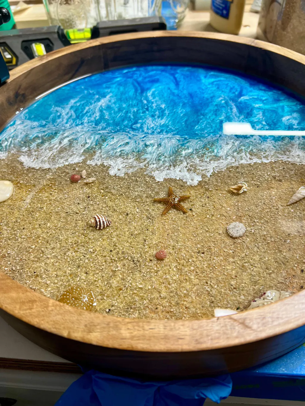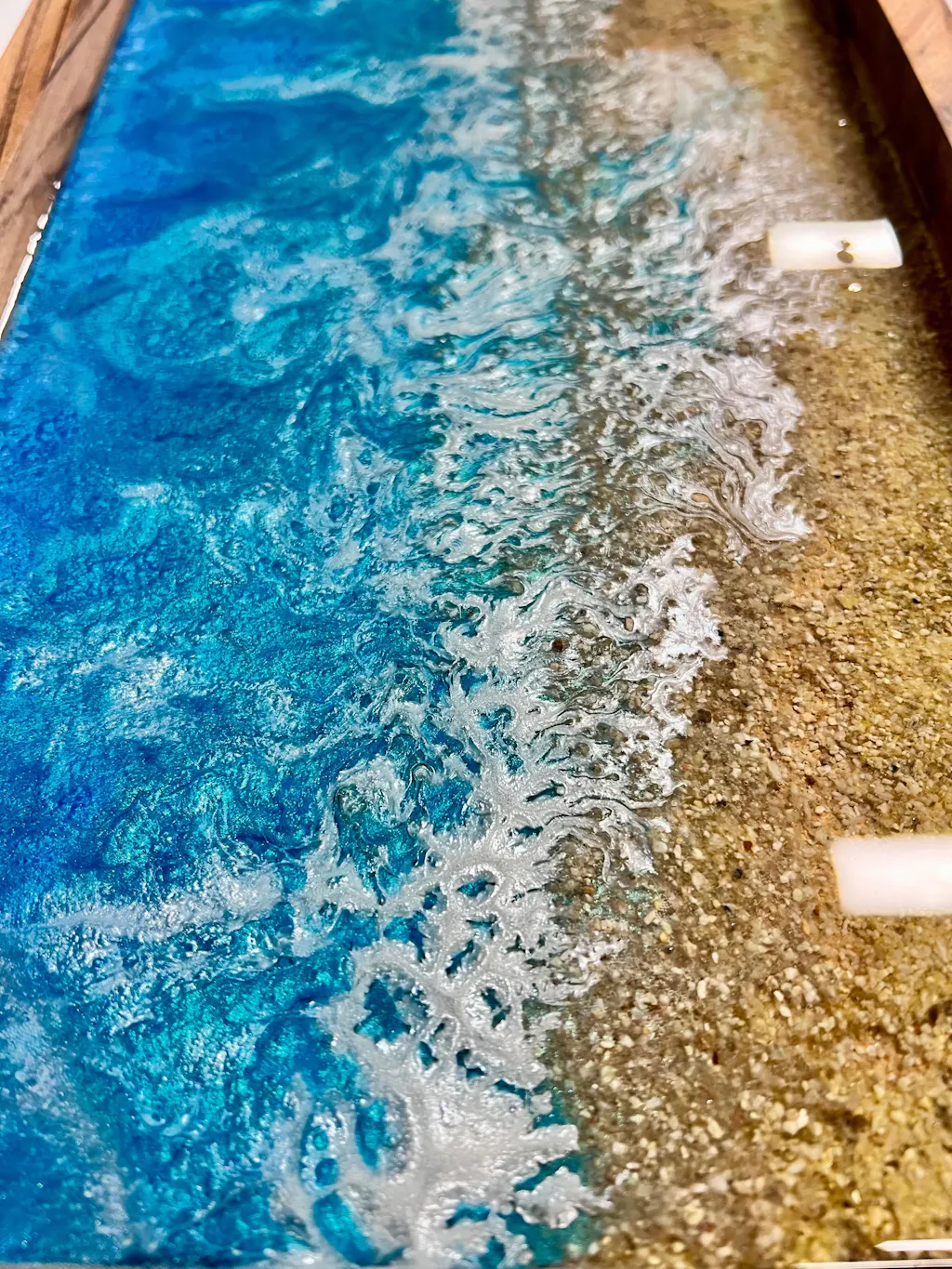 It’s the same epoxy used throughout your project, simply brushed on in a small batch to ensure a flawless, glass-smooth finish.