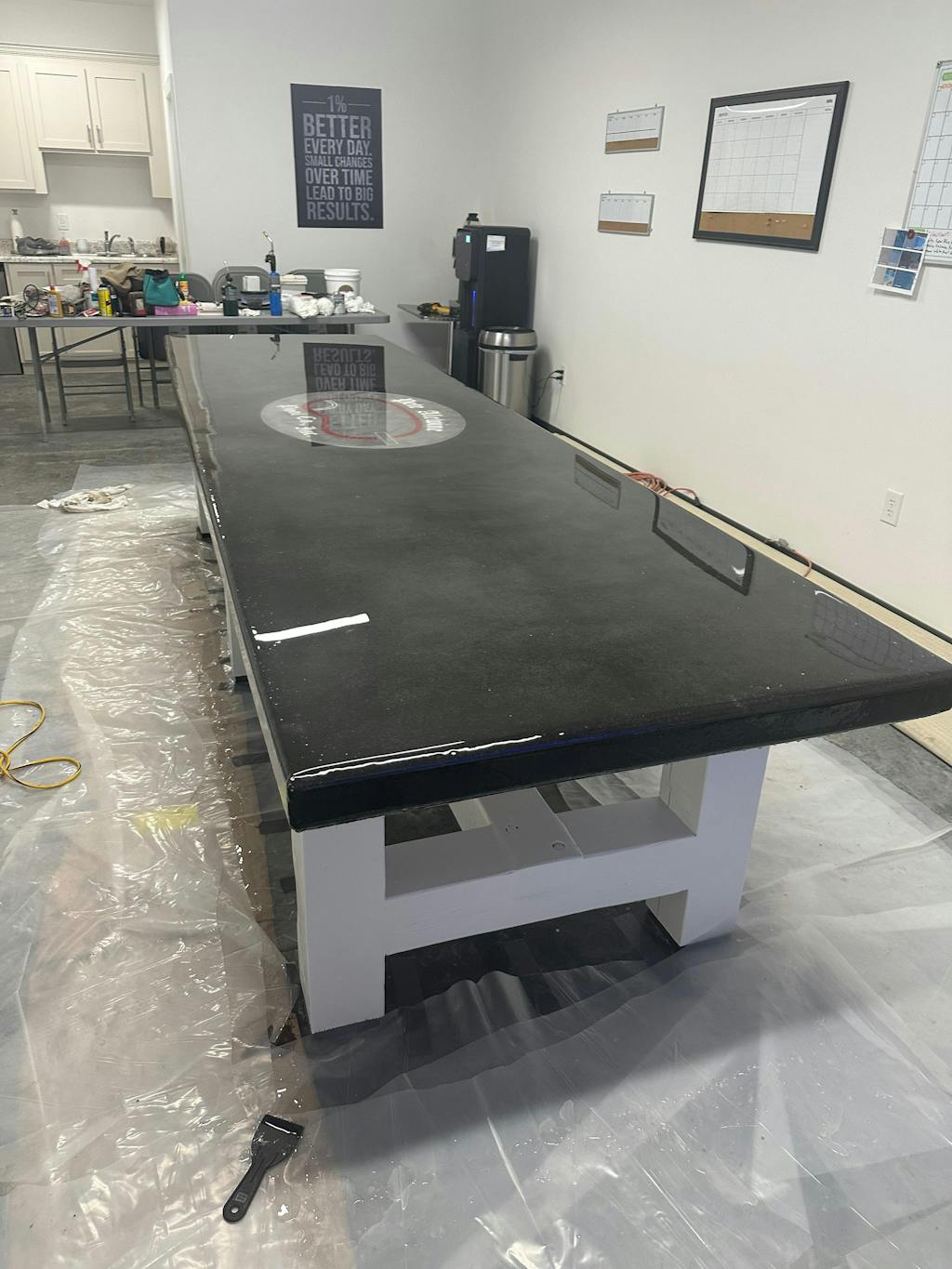 Once the seal coat has set for 4 to 6 hours, the flood coat is poured directly over the surface. It naturally flows and self-levels to a smooth 1/8-inch layer, creating a flawless, glass-like finish with no extra effort.