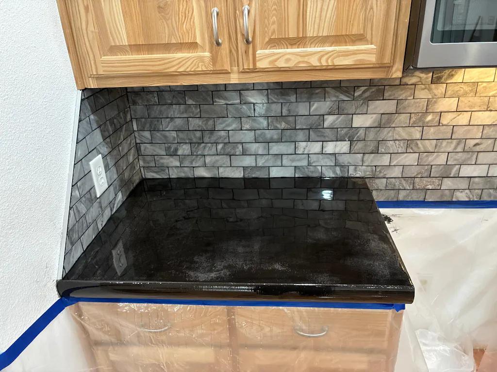 It’s the same epoxy used throughout your project, simply brushed on in a small batch to ensure a flawless, glass-smooth finish.